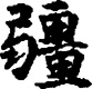 甲骨文、金文的疆字,象两块相连的田地,有的中间有界线,左边的弓是用来丈量土地的。因此,疆字的本义为丈量土地,划分田界,引申为田界、国界、边界。