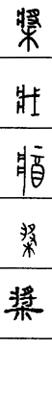 从上到下依次是小篆、甲骨文、金文、古玺及战国文字、缪篆及汉代文字、鸟虫篆。