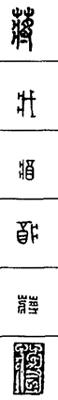 从上到下依次是小篆、甲骨文、金文、古玺及战国文字、缪篆及汉代文字、鸟虫篆。