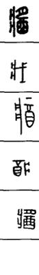 从上到下依次是小篆、甲骨文、金文、古玺及战国文字、缪篆及汉代文字、鸟虫篆。
