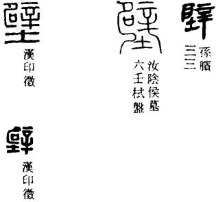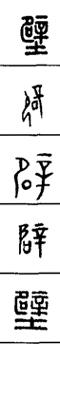 从上到下依次是小篆、甲骨文、金文、古玺及战国文字、缪篆及汉代文字、鸟虫篆。