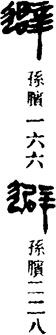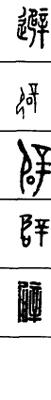从上到下依次是小篆、甲骨文、金文、古玺及战国文字、缪篆及汉代文字、鸟虫篆。