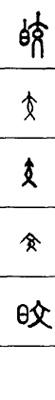 从上到下依次是小篆、甲骨文、金文、古玺及战国文字、缪篆及汉代文字、鸟虫篆。