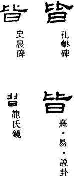 jiē 《广韵》:皆,说文作“皆”。俱词也。 古谐切 蟹开三平皆见