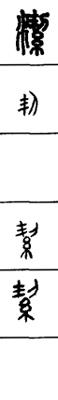 从上到下依次是小篆、甲骨文、金文、古玺及战国文字、缪篆及汉代文字、鸟虫篆。