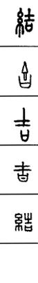 从上到下依次是小篆、甲骨文、金文、古玺及战国文字、缪篆及汉代文字、鸟虫篆。