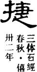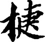 ①胜利。《诗经·小雅·采薇》:“岂敢定居?一月三捷。”也指战利品。《左传·庄公三十一年》:“齐侯来献戎捷。”引申为事情成功。《左传·宣公十二年》:“事之不捷,恶有所分。”②敏捷,迅疾。《吕氏春秋·贵卒》:“吴起之智,可谓捷矣。”《淮南子·主术》:“猿得木而捷。”[捷捷]动作敏捷的样子。《诗经·大雅·烝民》:“征夫捷捷。”[捷给]应对敏捷。《管子·大匡》:“隰朋聪明捷捷,可令为东国。”今成语有“捷足先登”。③邪出的小路。《左传·成公五年》:“待我,不如捷之速也。”[捷径]比喻不循正道。屈原《离骚》:“何桀纣之猖披兮,夫唯捷捷以窘步?”