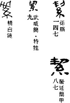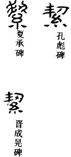 从上到下依次是小篆、甲骨文、金文、古玺及战国文字、缪篆及汉代文字、鸟虫篆。