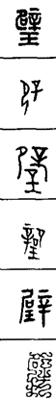从上到下依次是小篆、甲骨文、金文、古玺及战国文字、缪篆及汉代文字、鸟虫篆。