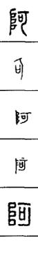 从上到下依次是小篆、甲骨文、金文、古玺及战国文字、缪篆及汉代文字、鸟虫篆。