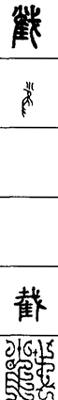 从上到下依次是小篆、甲骨文、金文、古玺及战国文字、缪篆及汉代文字、鸟虫篆。