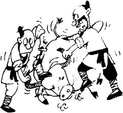 ㈠ jiě ①分解牛或其他动物的肢体。《庄子·养生主》:“庖丁为文惠君解牛。”(庖:厨师。丁:厨师的名字。)《左传·宣公四年》:“宰夫将解鼋。”(鼋yuán:大鳖。)也指分割人的肢体。《墨子·节葬》:“其长子生,则解而食之,谓之宜弟。”方苞《狱中杂记》:“四肢解尽,心犹不死。”引申为脱落。《吕氏春秋·仲夏》:“鹿角解,蝉始鸣。”又引申为把纠结着的东西解开。《孟子·公孙丑上》:“民之悦之,犹解倒悬也。”马中锡《中山狼传》:“出我囊,解我缚。”②融化。《吕氏春秋·孟春》:“东风解冻。”(东风:春风。)袁宏道《满井游记》:“于时冰皮始解。”引申为消散。《战国策·赵策四》:“太后之色少解。”(少:稍稍。)③排解,排除。《战国策·赵策三》:“所贵于天下之士者,为人排患释难解纷乱而无所取也。”《荀子·臣道》:“遂以解国之大患。”④解释,解说。《三国志·蜀书·诸葛亮传》:“先主解之曰:‘孤之有孔明,犹鱼之有水也。’”韩愈《师说》:“师者,所以传道受业解惑也。”(受:授。)引申为理解,懂得。《论衡·问孔》:“苟有不晓解之问,造难孔子,何伤于义?”杜甫《月夜》:“遥怜小儿女,未解忆长安。”