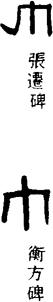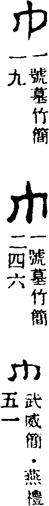 从上到下依次是小篆、甲骨文、金文、古玺及战国文字、缪篆及汉代文字、鸟虫篆。