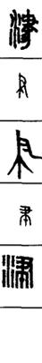 从上到下依次是小篆、甲骨文、金文、古玺及战国文字、缪篆及汉代文字、鸟虫篆。