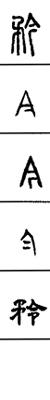 从上到下依次是小篆、甲骨文、金文、古玺及战国文字、缪篆及汉代文字、鸟虫篆。