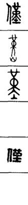 从上到下依次是小篆、甲骨文、金文、古玺及战国文字、缪篆及汉代文字、鸟虫篆。