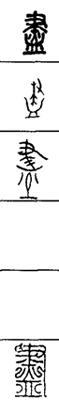 从上到下依次是小篆、甲骨文、金文、古玺及战国文字、缪篆及汉代文字、鸟虫篆。
