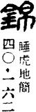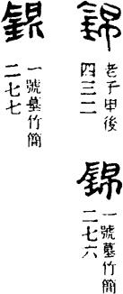 (一)ǐn 《广韵》:释名曰,锦,金也,作之用功重,其价如金。 居饮切 深开三上寝见