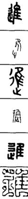 从上到下依次是小篆、甲骨文、金文、古玺及战国文字、缪篆及汉代文字、鸟虫篆。