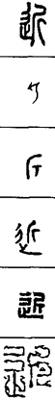 从上到下依次是小篆、甲骨文、金文、古玺及战国文字、缪篆及汉代文字、鸟虫篆。