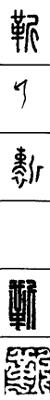 从上到下依次是小篆、甲骨文、金文、古玺及战国文字、缪篆及汉代文字、鸟虫篆。