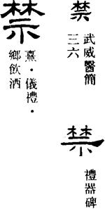 〈辨〉禁从示,本义为吉凶的禁忌;引申为禁1的义项①等。