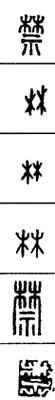 从上到下依次是小篆、甲骨文、金文、古玺及战国文字、缪篆及汉代文字、鸟虫篆。