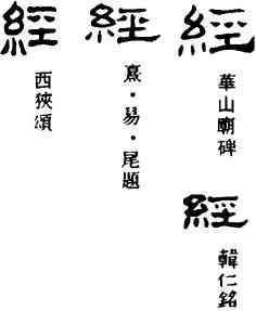 金文的经字本是个象形字,象绷撑在织布机上的三根“经线”之形;后来增加丝旁(糸),于是经字变成左形右声的形声字。经的本义是指织物的纵线,与“纬”相对。南北为经、东西为纬。经纬是道路主干的方向,引申指大道,又引申指常行的道理、规则、法制、原则等。此外,经字还可用作动词,有经历、量度、治理等义。