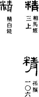 馬王堆帛書《老子》甲本卷後古佚書《五行》:“不仁,思不能睛。”“仁之思也睛。睛則察,察則安,安則温。”“思不睛不察,思不長不得。”睛皆應讀精。又馬王堆帛書《相馬經》:“……中匿者,艮精也。”此以精為睛,“艮精”即“眼睛”。