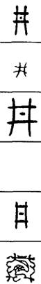从上到下依次是小篆、甲骨文、金文、古玺及战国文字、缪篆及汉代文字、鸟虫篆。