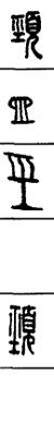 从上到下依次是小篆、甲骨文、金文、古玺及战国文字、缪篆及汉代文字、鸟虫篆。