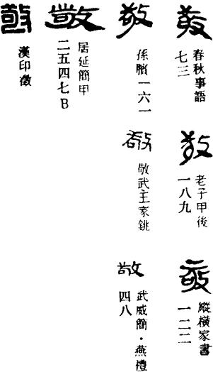 ”,如《易·需》“敬慎不败也”,《左传·僖公三十三年》“能敬必有德”,《论语·先进篇》“门人不敬子路”,《卫灵公篇》“行敬笃”等,诸“敬”字即书如是。(11)