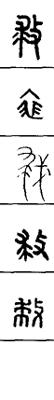 从上到下依次是小篆、甲骨文、金文、古玺及战国文字、缪篆及汉代文字、鸟虫篆。