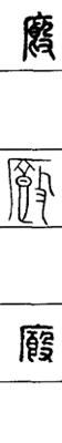 从上到下依次是小篆、甲骨文、金文、古玺及战国文字、缪篆及汉代文字、鸟虫篆。