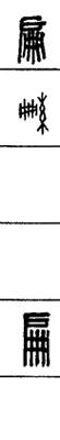 从上到下依次是小篆、甲骨文、金文、古玺及战国文字、缪篆及汉代文字、鸟虫篆。