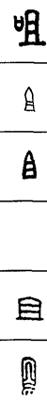 从上到下依次是小篆、甲骨文、金文、古玺及战国文字、缪篆及汉代文字、鸟虫篆。
