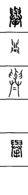 从上到下依次是小篆、甲骨文、金文、古玺及战国文字、缪篆及汉代文字、鸟虫篆。