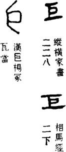 〈辨〉巨字金文初作人持矩形,矩为木工的曲尺,后来人形由大讹变为夫讹变为矢,字形变为矩;后期金文省为仅象矩形,篆书讹变,楷书作巨。巨本为规矩的矩的象形字,后来借用巨大的巨;矩用为规矩的矩的专字。巨大的巨,原来用鉅;鉅的本义指坚硬的铁,引申有巨大义,今用巨。