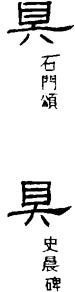 从貝省,楷书作具◇注意:具字上部不从且,中间三横,非两横,不要写错。