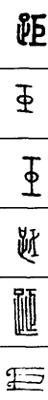 从上到下依次是小篆、甲骨文、金文、古玺及战国文字、缪篆及汉代文字、鸟虫篆。