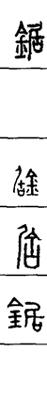从上到下依次是小篆、甲骨文、金文、古玺及战国文字、缪篆及汉代文字、鸟虫篆。