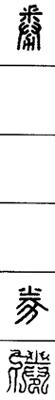 从上到下依次是小篆、甲骨文、金文、古玺及战国文字、缪篆及汉代文字、鸟虫篆。