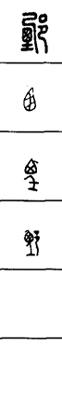 从上到下依次是小篆、甲骨文、金文、古玺及战国文字、缪篆及汉代文字、鸟虫篆。
