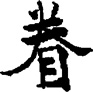 juàn 《广韵》:眷属。说文,顾也。 居倦切 山合三去缐见