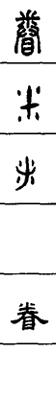从上到下依次是小篆、甲骨文、金文、古玺及战国文字、缪篆及汉代文字、鸟虫篆。