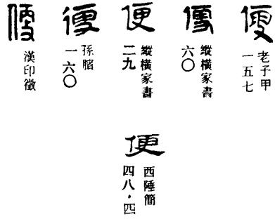 馬王堆帛書《老子》甲本《道經》:“是以吉事上左,喪事上右;是以便將軍居左,上將軍居右,言以喪禮居之也。”便乙本及通行本作偏。按《論語·季氏》:“友便佞。”《説文》言部引便作諞。