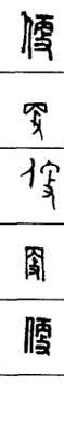 从上到下依次是小篆、甲骨文、金文、古玺及战国文字、缪篆及汉代文字、鸟虫篆。