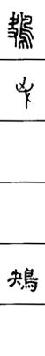 从上到下依次是小篆、甲骨文、金文、古玺及战国文字、缪篆及汉代文字、鸟虫篆。