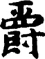 □,17画。①古代饮酒的器具,有三足。②爵位,君主国家贵族封号的等级