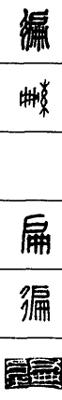 从上到下依次是小篆、甲骨文、金文、古玺及战国文字、缪篆及汉代文字、鸟虫篆。